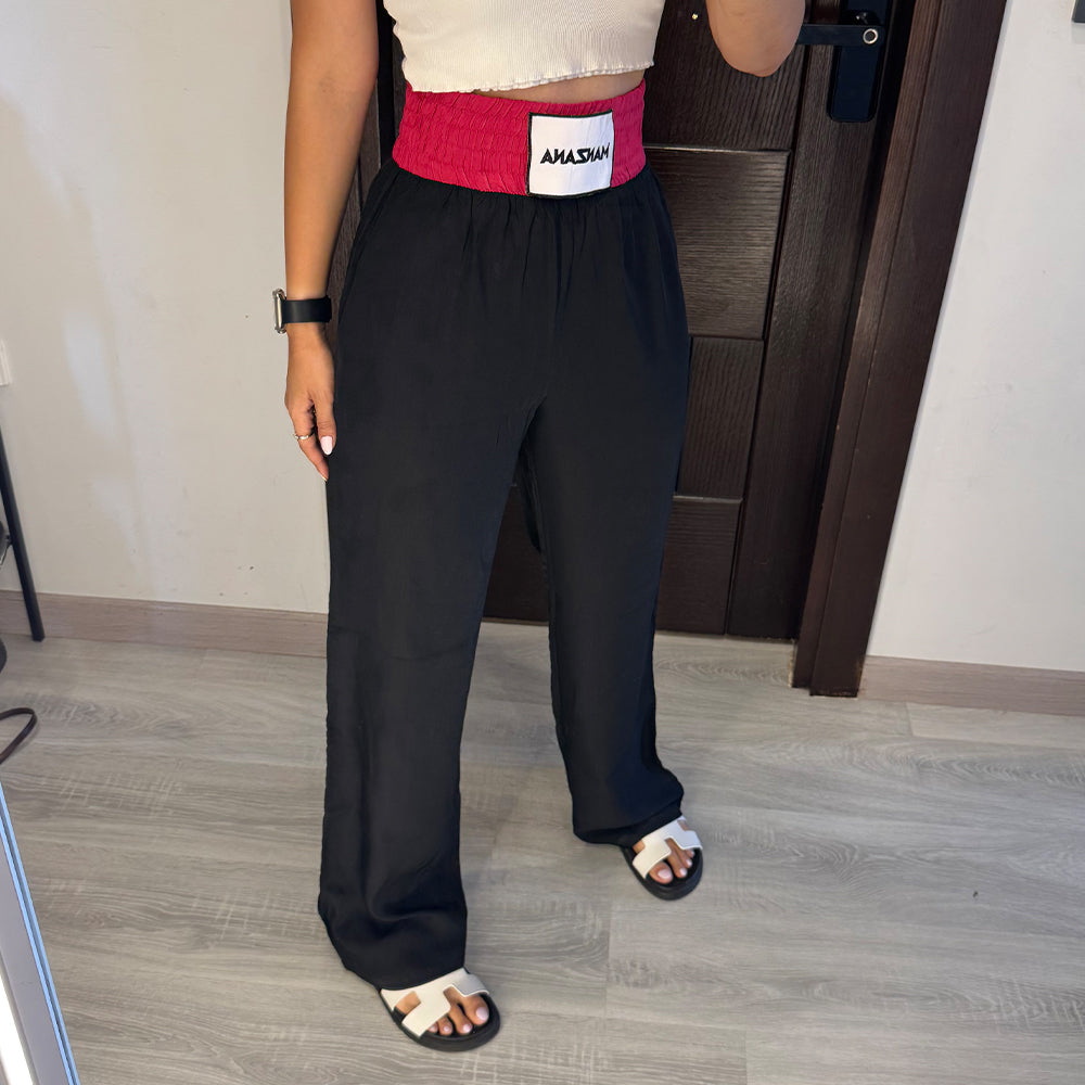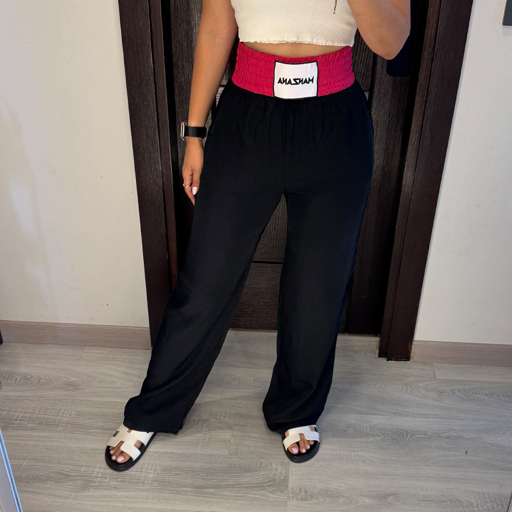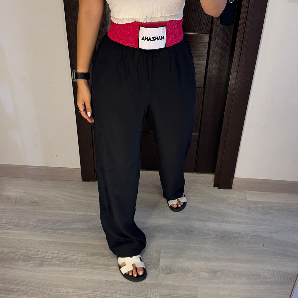 Black Joggers with Fuchsia Double waist