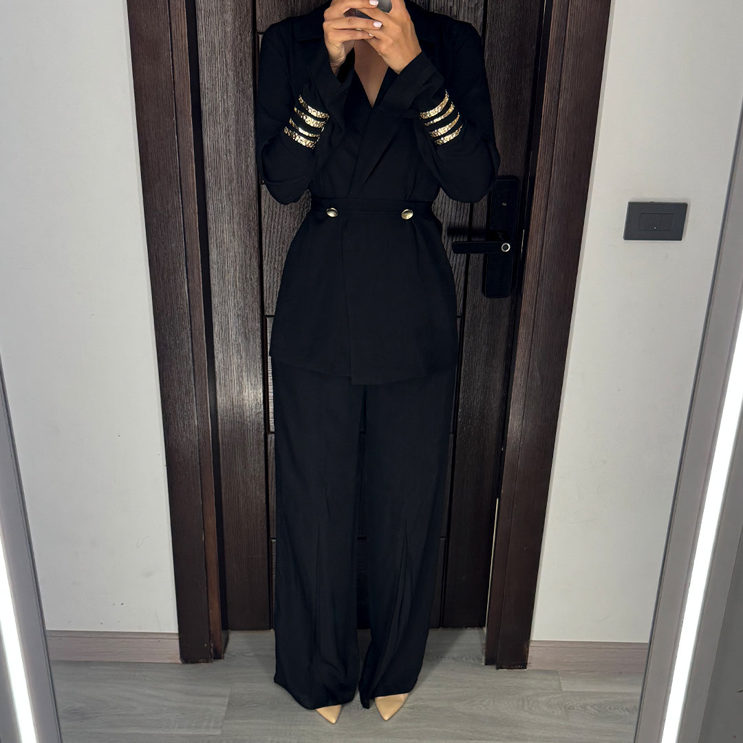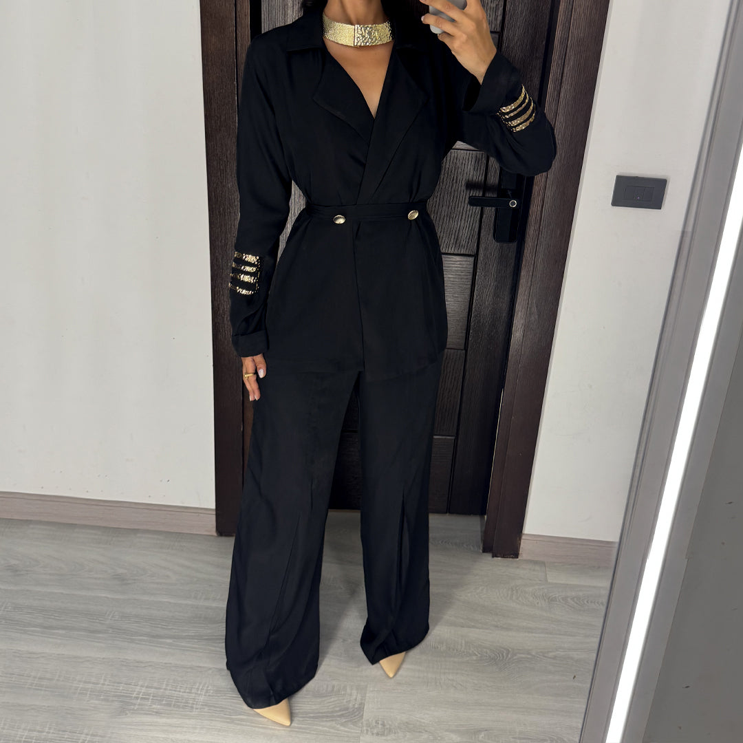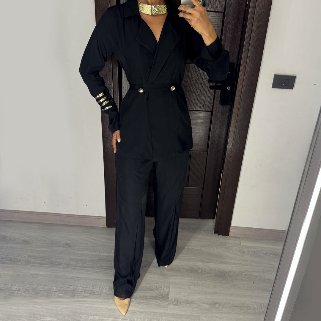 Black Satin Voile Wide-Leg Set